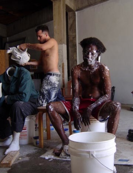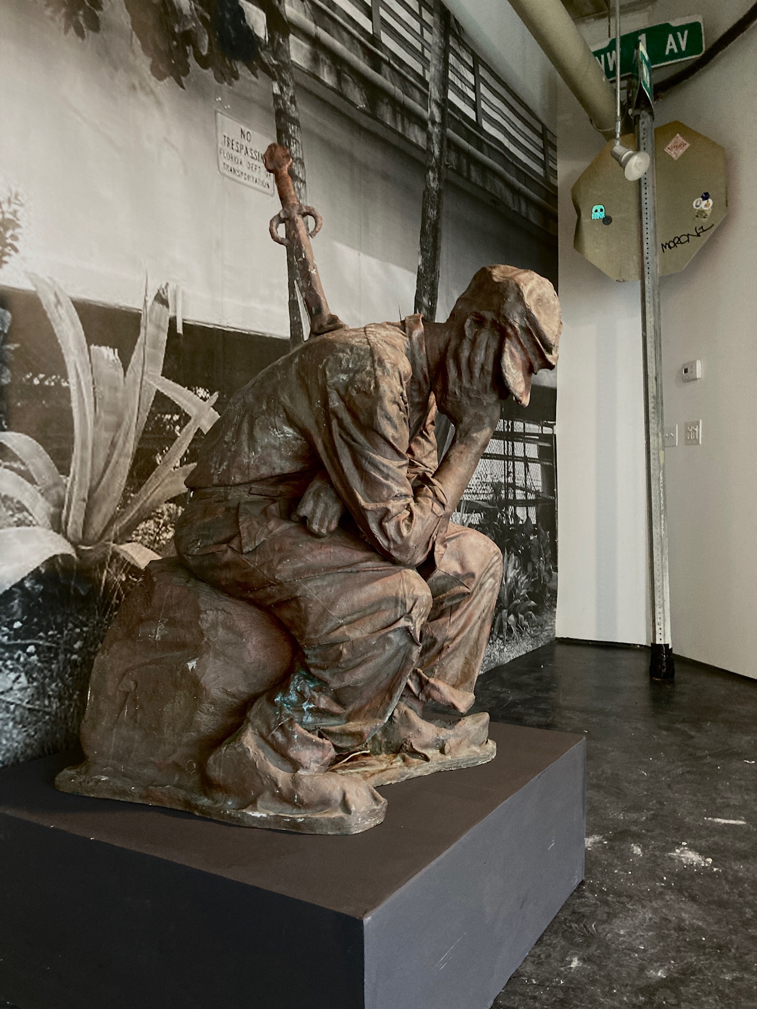 In March of 2006 Sanchez-Calderon created a sculpture based on Durer’s drawings removing the farm elements yet maintaining the solitary figure of the stabbed peasant. He substituted a contemporary surrogate; a gentleman from the Overtown area named DANA and made a full-scale body cast of him. Dana passed away in February of 2009.