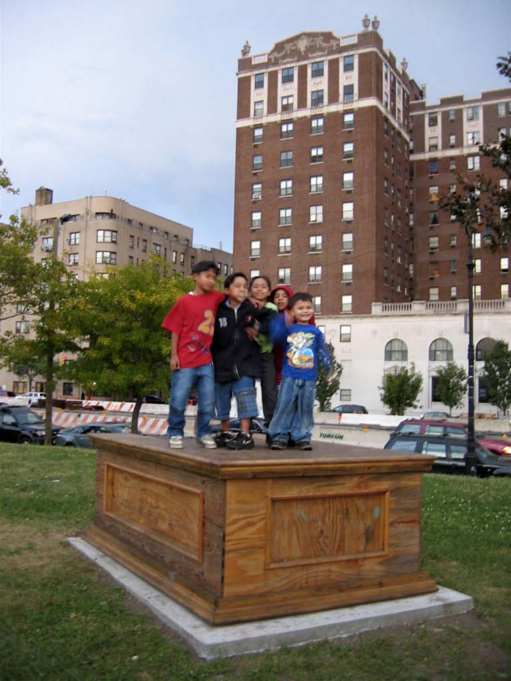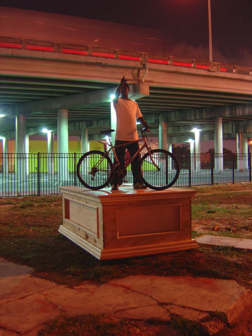 Monument / Plinth / Stoop was originally placed in Overtown, Florida adjacent to the I-395 Freeway in March of 2006. The participants were documented and images were printed and gifted to them. The sculpture was next to the artist's studio and home.