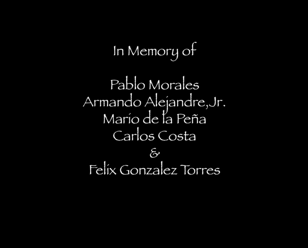 The exhibit is dedicated to the four Americans, members of “Brothers to the Rescue” who were shot down by Soviet MIG’s over international waters while looking for Cuban exiles / migrants looking for a better life in the U.S.A. & to Felix Gonzalez-Torres.