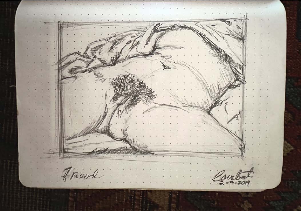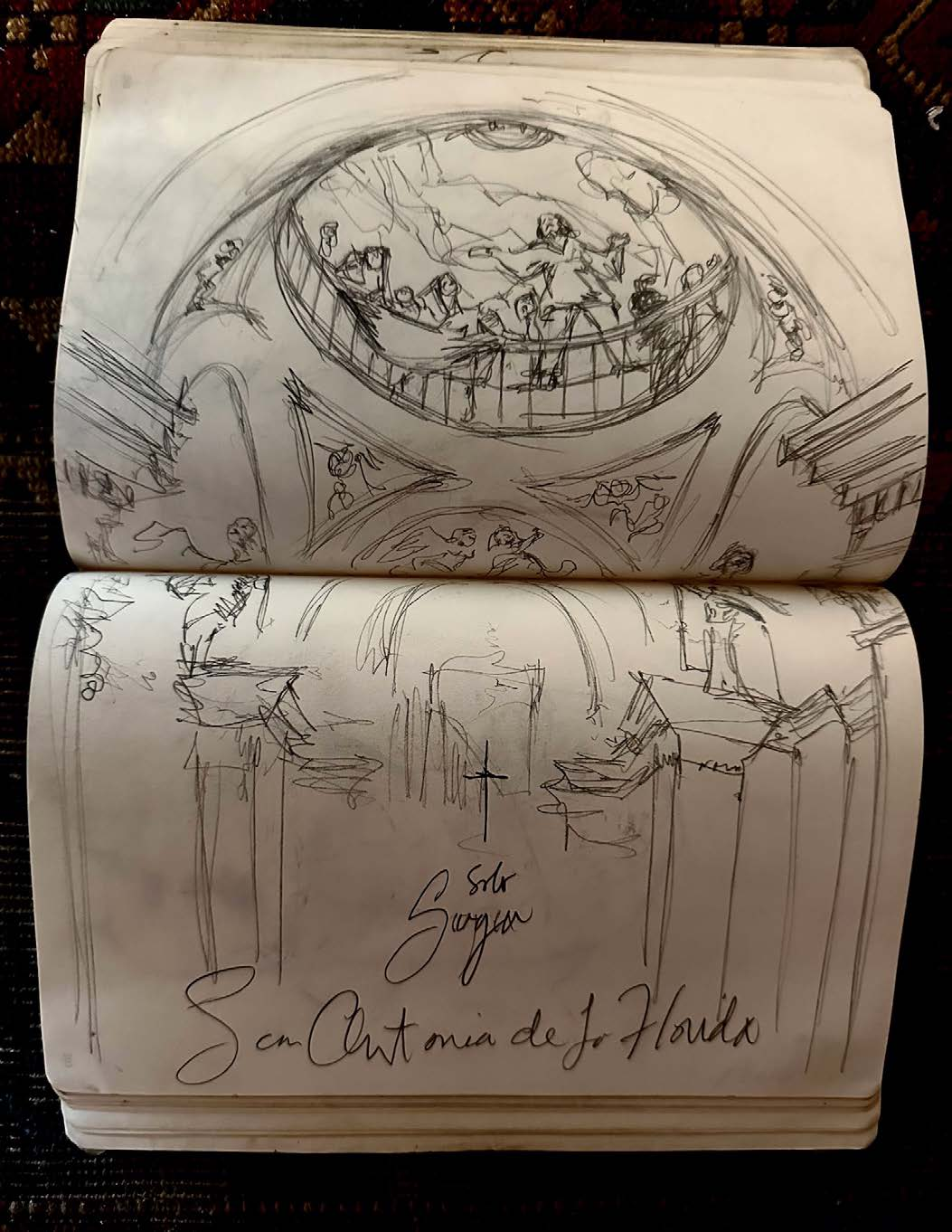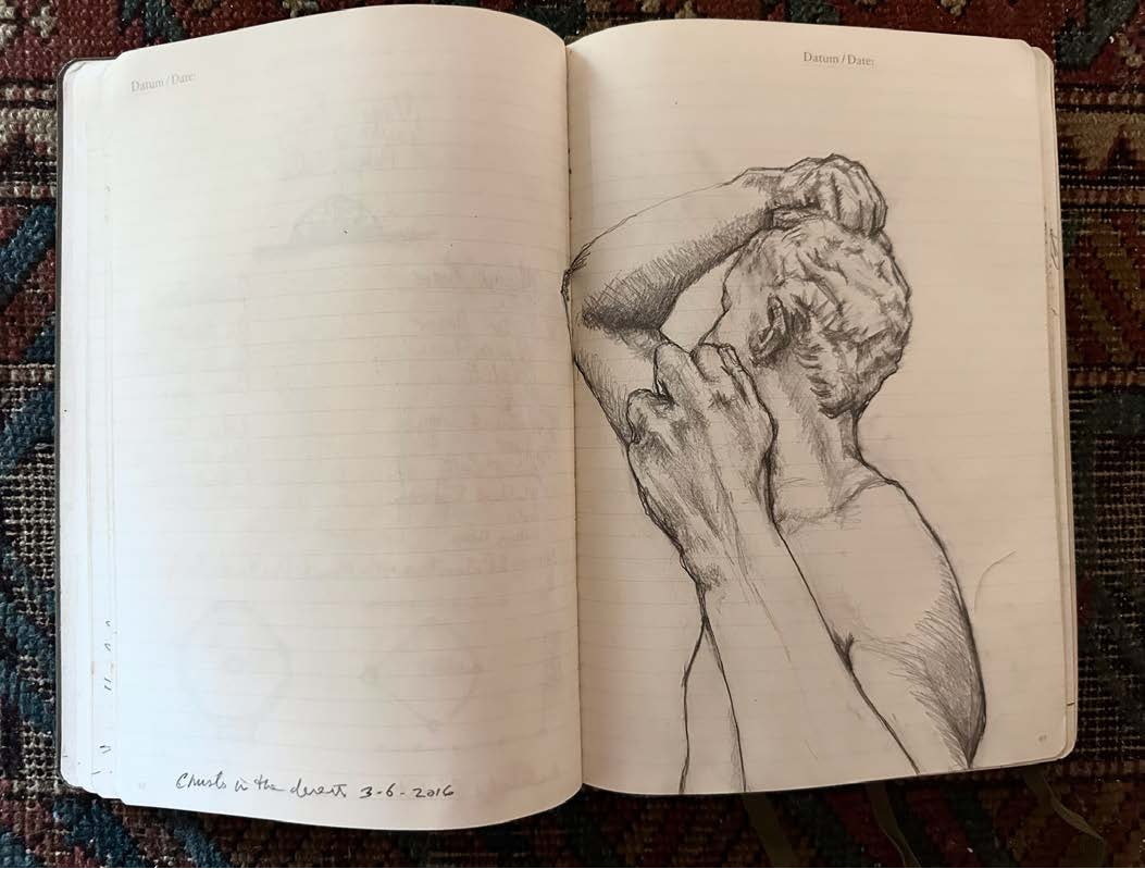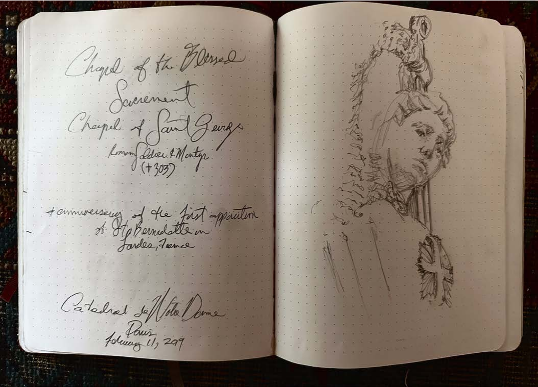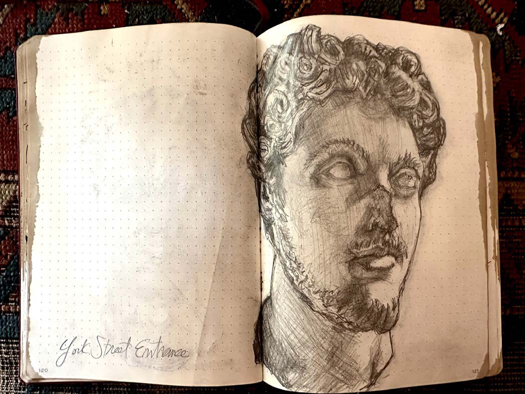 I began documenting my visits to museums, caves and churches inside of my Leuchtturm drawing journals after my eminent domain in 2014. The journals I work in are 8.25” X 5.5". The challenge of working in museums as passerby’s look over your shoulder and drawing inside of caves with prehistoric art with no lighting at all is all good practice to stay focused on the task at hand, doing what for some reason comes very natural to me.