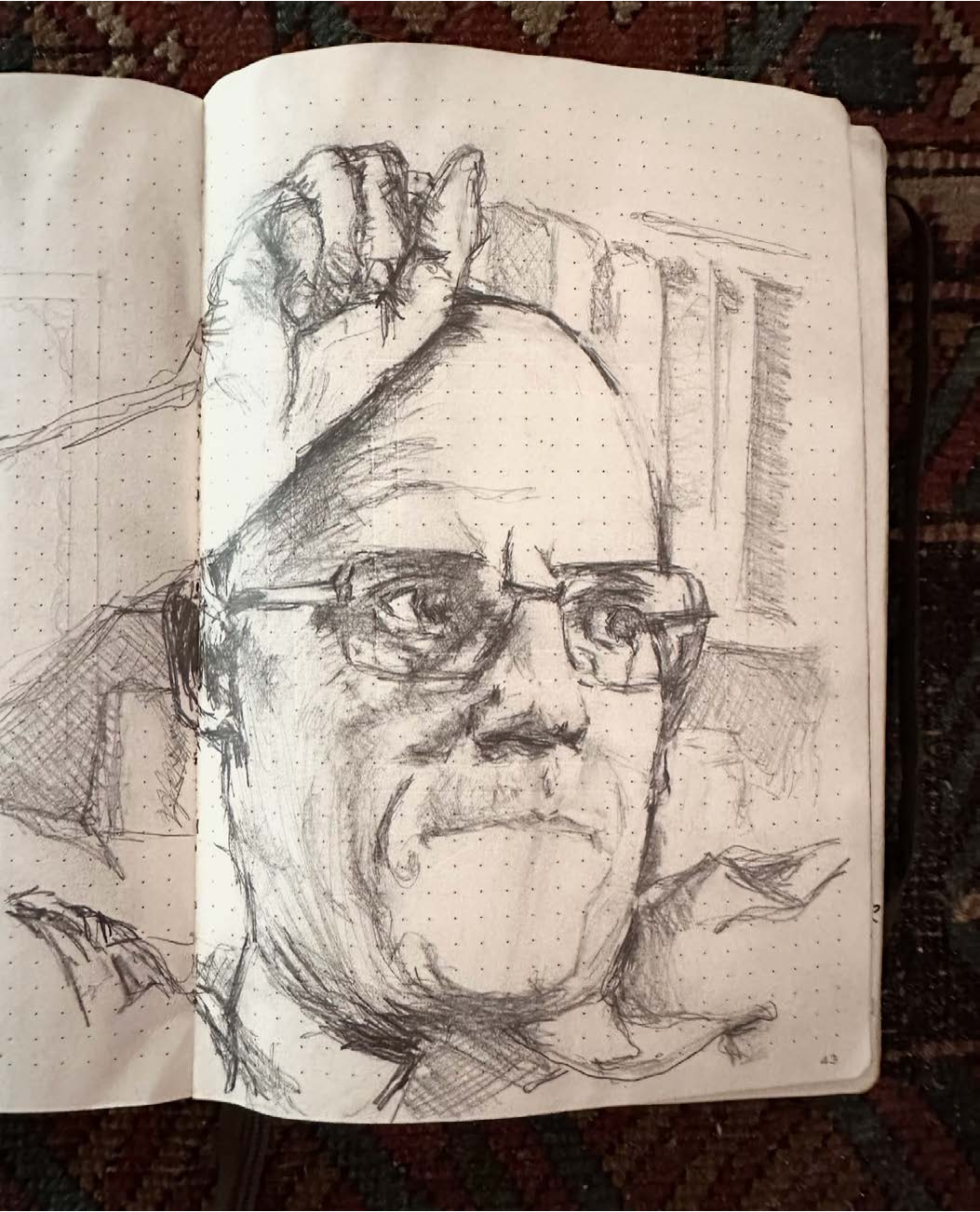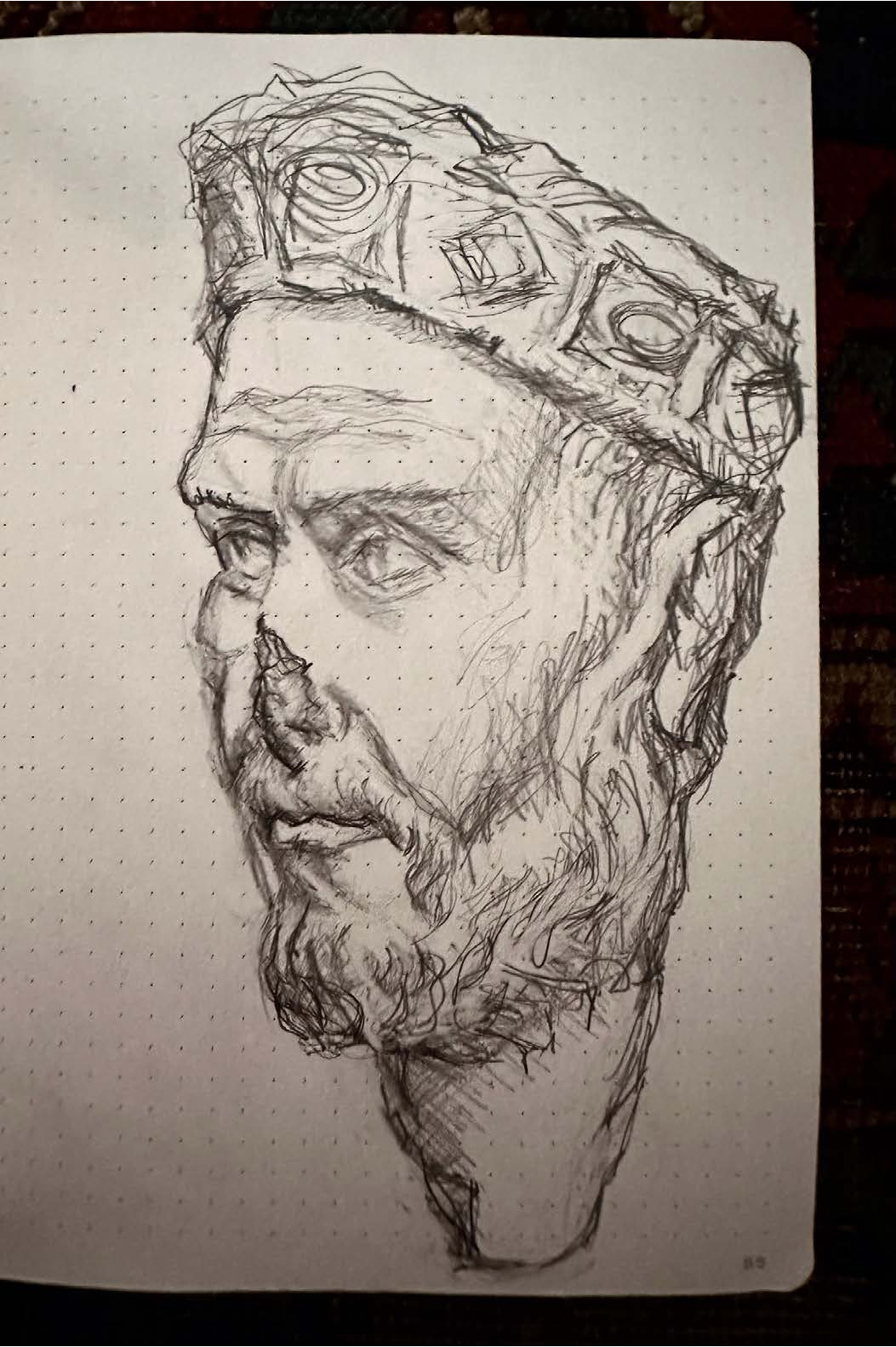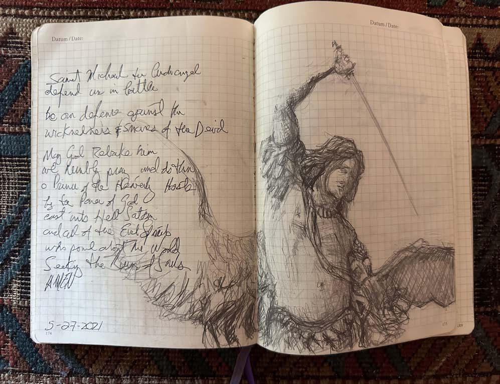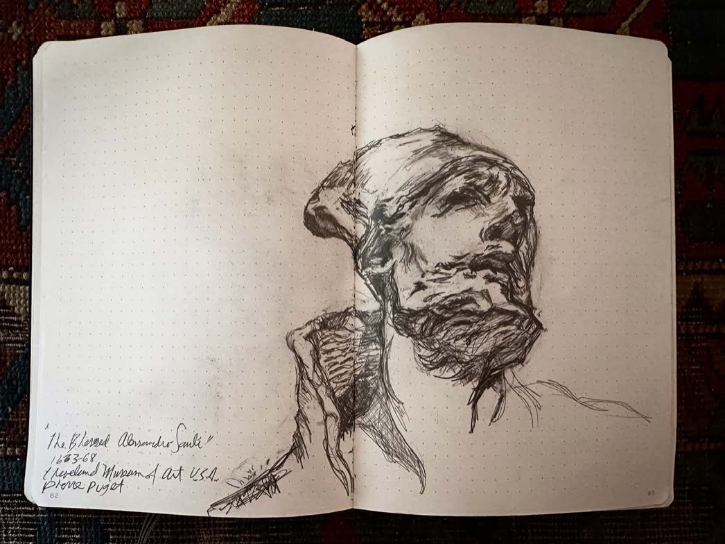 I began documenting my visits to museums, caves and churches inside of my Leuchtturm drawing journals after my eminent domain in 2014. The journals I work in are 8.25” X 5.5". The challenge of working in museums as passerby’s look over your shoulder and drawing inside of caves with prehistoric art with no lighting at all is all good practice to stay focused on the task at hand, doing what for some reason comes very natural to me.